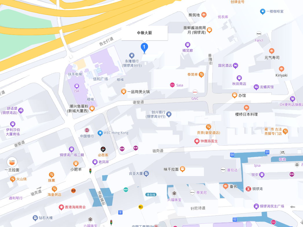 地址:香港铜锣湾告士打道262号中粮大厦1701室