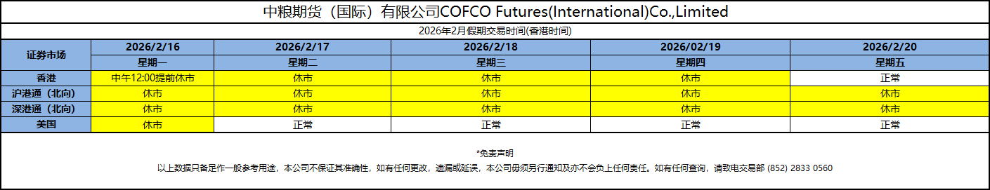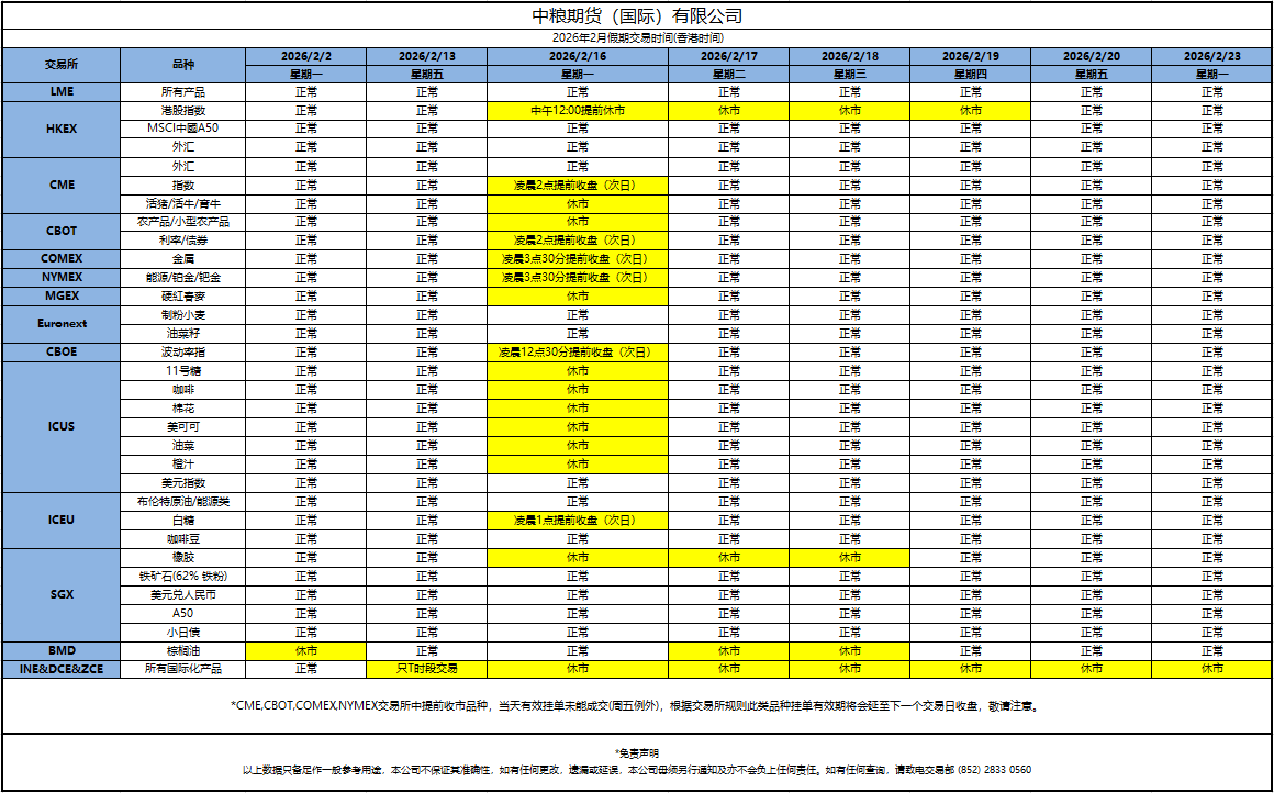 2026年2月休市时间表